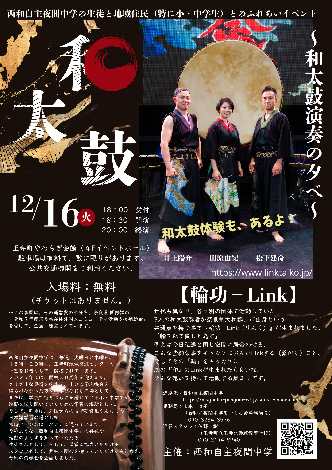 奈良・大阪・京都にて太鼓・チャッパの教室を各地に持ち、毎年大きな発表会&コンサートを開催している。
