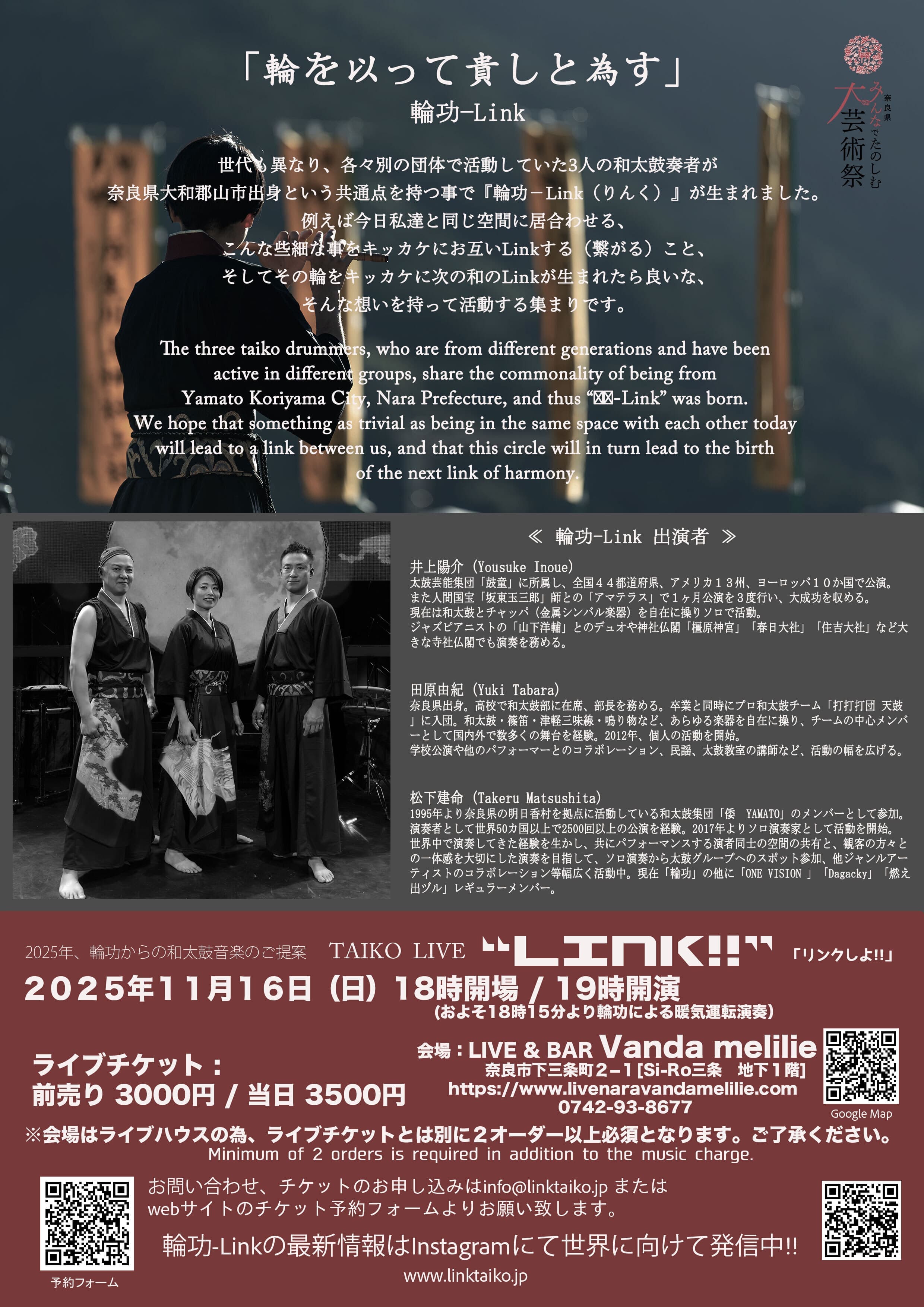 He has performed all over the world, and his goal is to share the space between performers and to create a sense of oneness with the audience. Currently, in addition to “Link” he is a regular member of “ONE VISION” and "Dagacky".